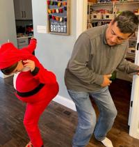 Becky Tipton of Crystal City sent in a photo from Thanksgiving of her granddaughter, Nora Tipton, 10, dancing with Nora’s uncle, Steve Carrera of St. Louis. According to Becky, Nora stuffed her Santa suit with pillows.