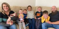 On the couch, from left, are Haley, Rylie and Gavin Fisher; Sandra; Colin Ammel; Addison, Braden and Brett Fisher; and Carter Ammel; with Cammi Fisher on the floor.