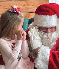 Linda Runzi, 73, of Festus took this picture of her great-granddaughter, Gwen Green, 4 of Imperial with Santa. “We were all waiting to hear her Christmas list, but she decided to tell it ‘secretly’ to Santa,” Linda said.