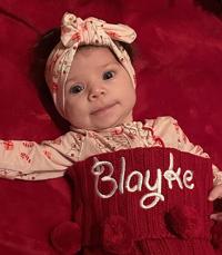 Linda Runzi of Festus sent a photo of her great-granddaughter, Blayke Green, 2 months, tucked inside her Christmas stocking. Blayke is the daughter of Nick Green and Meaghan Blomes of Pevely; granddaughter of Tricia and Charles Green of Pevely; and great-granddaughter of Linda and Oliver Runzi.