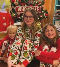 Kayla Gill of De Soto took this photo earlier this month of her children dressed in their Grinch-themed pajamas. From left are Oliver Hardin, 4; Lillie Gill, 12; and Ava Rothgeb, 9.