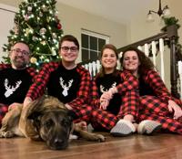 Susan and Wayne Boostrom of De Soto sent a photo of their daughter, Shari Pinkel, 44, of De Soto with her husband and children around the Christmas tree last month. From left are Jeff Pinkel, 44; Miles Pinkel, 18; Shari; and Isabella Pinkel, 15. Meg, a 3-year-old German shepherd, also joins the holiday fun.