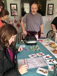 In the picture, Kevin watches as Jennifer Bremerkamp, his nephew’s wife, tries solving the clues. To the left is Kevin’s sister, Dana Gillespie, and mother, Reba Zerr.