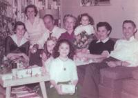 Sharon sits front and center on the floor with Lila Filkins behind her. On the couch, from left, are Sharon’s cousin, Jean Walker; Norma; Lawrence; Anna Mary Filkins; Sharon’s sister, Donna Liverar; and their parents, Wilma and Bryan Liverar.