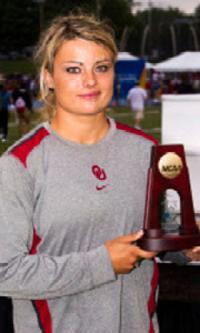 Festus native Brittany Borman has qualified for the finals Sunday (July 1) in the women’s javelin at the U.S. Olympic track and field trials in Eugene, Ore. In the qualifying round on Friday (June 29), Borman’s first throw was her best at 54.50 meters (178 feet, nine inches) and that was good enough to place her fourth among the 12 qualifiers. The top three in the finals are eligible to compete on the U.S. team at the London Olympics if each meets or exceeds the Olympic qualifying “A” standard of 61 meters (200 feet, one inch). (Photo: Brittany Borman, a senior at Oklahoma University, with the first of her two NCAA championship trophies in the women’ javelin.)