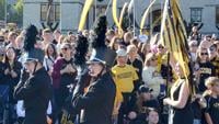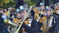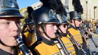 Barely eight hours after leaving the field at completing their halftime show on Friday, Oct. 20, at Tiger Stadium, the Festus High Marching Tigers departed for a home of the Tigers of a different stripe -- the University of Missouri, which was celebrating its homecoming with a parade through downtown. When all was said and done (and played), the Marching Tigers were judged the best musical unit and was the top-scoring high school band in the procession to win top honors in the Gold Division (large schools). While awaiting for the results to be tallied, some of the band members, apparently with some energy still to burn, engaged in a spirited game of Duck, Duck, Goose.