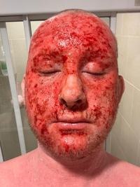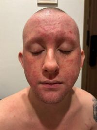 “I had full blown skin infections head to toe. I lost all my hair, my eyebrows, and my beard started falling out. I couldn’t leave bed for weeks and was having panic attacks.