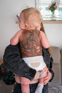 Macey-Mai was born with giant congenital melanocytic nevus (GCMN), a benign, tumor-like malformation.