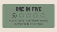 Men were more likely to love horror movies (33% vs. 24%) — and on the other end of the scale, one in five women (21%) said they “hate” horror movies (compared to 7% of men).