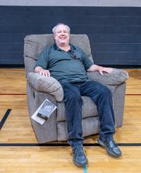 Tom Heyman of Arnold tests out the recliner he won from Genuine Appliance and Furniture.