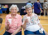 Benni Hargis and Sue Stokes, both of Festus, take a coffee break.
