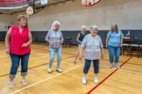 A group of ladies from southern Jefferson County line dance to “Sweet Caroline.”