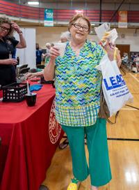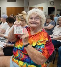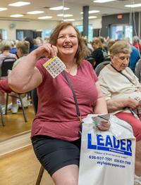Jane Bilodeau of Hillsboro wins a gift card in a game of bingo at the Festus Senior Expo.