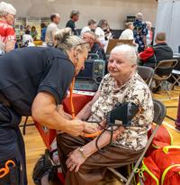 Julia Recar of Festus has her blood pressure checked by Joachim-Plattin Ambulance paramedics.