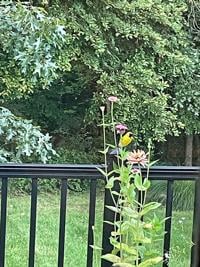 Angela Ibaviosa, 54, of Festus took this picture in July at her home. “This is the first year I’ve seen a gold finch perched on my zinnias planted on our deck,” Angela said.
