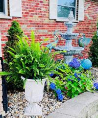 Darlene Drury, 76, of Festus took this picture earlier this year of her home garden. “Behind one of the many stone walls my husband, Richard Drury, has built, I have planted and sculpted birds into the hedges that hug the rose and lily gardens,” Darlene said. “To add to the fairytale-like feel, we installed a four-tiered fountain that draws endless birds, squirrels and even the occasional bride and groom for photos (our granddaughter and grandson-in-law)!” The couple received the land in the mid-1970s, and Richard built the house and other structures on the property while Darlene taught herself how to garden and landscape.