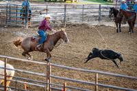 Bareback riding, out of the gate, is Tanner Phipps from Dalton, Ga.