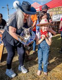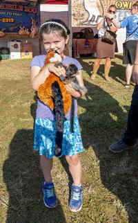 Gwenyth Kloeppel, 5, of Fenton with a baby kangaroo, Kip, a 7-month-old male, held by Robin Potter from Wildlife Command Center.