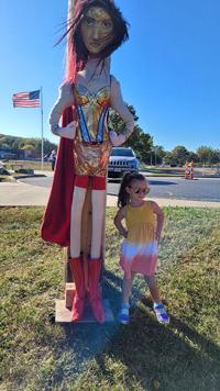 Donna Andell of House Springs took this picture of her granddaughter, Cora Frazier of Pevely, with a scarecrow during Eureka’s Scarecrow Festival last year. “(Cora) said she was a superhero like the scarecrow and had to pose like her,” Donna said. “Girls can do anything.”
