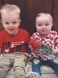 Noah Smith, 2, and Grace Smith, 8 months, both from Hillsboro, are ready to go to a Valentine’s Day dinner in this picture their grandmother, Debbie Massey of Hillsboro, sent in. “My grandchildren fill my heart with so much joy,” Debbie said.