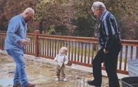 Cindy Heimos of De Soto sent a photo of her great-grandson, Eliott Urfer, outside with his grandpa, Rob Heimos, left, and great-grandpa, Don Heimos. “At a family gathering it had been raining all day,” Cindy said. “Eliott wanted to go outside and play, but mom (Samantha Urfer) was not having it. So, once it stopped, (Rob and Don) decided to take him outside and teach him how to stop in water puddles. He thought it was so funny and had a blast getting wet.”