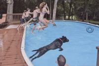 Douglas Shropshire, 65, of Dittmer sent a picture of his grandchildren, Raegan, Douglas, Henry, Jacob and Ella Shropshire, and Hugo the dog jumping into a pool.