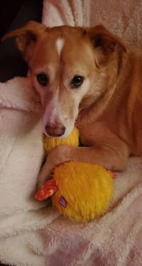 Sandra Kost, 54, of Hillsboro took this picture last month of Sunny, a 13-year-old Labrador, akita and golden retriever mix. “I had just gotten this ducky toy for Sunny, and she loved it so much she wouldn't let go of it,” Sandra said. “That evening, she hopped up on the sofa with it, ready for bed with her paw wrapped around it. She had the sweetest look on her face.”