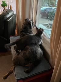 Kim Myerscough, 54, of Eureka took this picture of her 4-year-old Great Dane, Phoebe, with her cats. “I work from home, so these are my co-workers,” Kim said. “Phoebe apparently wanted me to move the cats off her bed that is behind my desk! For such a big dog, she's a big baby!”