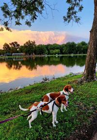 Mike Stroud, 73, of Imperial took this picture in August 2024 of his “granddogs,” Roscoe, 4, in front, and Lucy, 7. Both are American foxhound mixes. “Of all places, Arnold Park has some really great sunsets,” Mike said. “I was walking the dogs, and this was a perfect opportunity for a great picture.”