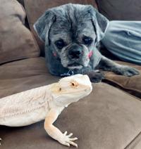 Maureen O’Donnell, 70, of Cedar Hill took this photo of her 14-year-old shih tzu and pug mix, Oskar. “His expression is priceless,” Maureen said. “He has no idea who this creature is!”