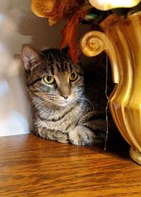 Mary Koch, 72, of De Soto took this picture in September 2018 of Sofie, a then 11-month-old tabby, the day after adopting her from the Humane Society. “This photo brings back memories of the day she chose us to be her humans and how shy, quiet and a little scared she was once we got her home and situated,” Mary said. “She liked to hide behind this floral vase and only occasionally peek out until she felt convinced there was plenty of love, food, fresh water and an abundance of treats at the ready.”