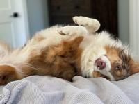 Michelle Govro, 55, of Eureka took this picture a few months ago of Lucy, her then 4-year-old Australian shepherd. “Lucy often begs for belly rubs,” Michelle said. “When she sees us coming, she rolls into this position and waits.”