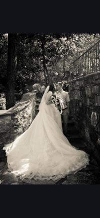 Trenton and Cassie Brown of Festus narrowly avoided disaster at their Oct. 1, 2022, wedding at Villa Antonia Winery. “This photo was a very candid shot!” Cassie said. “When we started cutting the cake, the cake stand started to give out and was headed directly at me. Luckily, we both let up on the cut and pushed the stand back up. That teamwork has carried through our next three years of marriage and is one of our greatest strengths as a couple. It gave us something to laugh about for the rest of our lives. This picture is framed on our living room wall, and I think back to that moment every day I look at it: the immense fear of what was about to happen, the relief of a miraculous save followed by the joy and laughter when (the photographer) immediately came up to us to show he captured this moment forever.” Photographer: Dayton with Complete Weddings and Events.