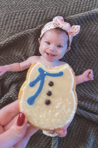 Linda Runzi of Festus took this picture during Christmastime of her granddaughter, Blayke Green, 3 months. “She was so tiny we could hold up this little sugar cookie to her,” Linda said.