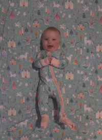Theresa Barker, 60, of De Soto sent a picture of her granddaughter, Margo Frantz, 7 months, of Bloomington, Ill. “Our Margo is precious,” Theresa said. “With her outfit and blanket matching, we had to ask, ‘Where’s Margo?’ But her excited, beautiful and joyous face could not be hidden. Blessed!”