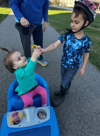 Sue Busken, 70, of Byrnes Mill sent a picture taken in March of her grandchildren, Reed Pulos, 4, and Blakely Pulos, 2, both from Fenton. “While we were riding bikes on the trail at the park, Reed found a flower and gave it to his sister, Blakely,” Sue said. “That’s how sweet he is. She took it with a big smile.”