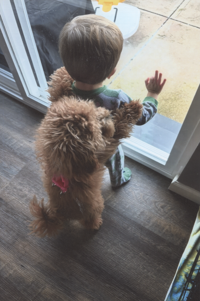 Pam Aylesworth, 64, of De Soto took this picture in October 2024 of her grandson, Slate James Aylesworth of Imperial, and his dog, CoCo, both 18 months. “Paw Paw was cutting grass outside, and Slate was wanting him and so was CoCo,” Pam said.