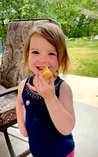 Mary Fehlker, 73, of Festus sent a picture from May 2023 of her youngest granddaughter, Rayna Wren Fehlker, then 3, of Festus. “She loves oranges and decided it was a beautiful day to step outside and enjoy a sweet, juicy orange,” Mary said. “She has the most amazing one-dimpled smile. To say we are smitten with this little doll is an understatement. This photo is one of my favorites of Rayna because it showcases her happiness with the simple things in life.”
