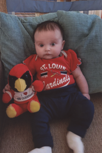 Yvonne Nickless, 71, of Festus sent a picture from February of her first grandchild, Athena Rose Pauley, 3 months, of Jefferson City. “Athena is posed with Fredbird, which was gifted to her mother when she was a baby from Athena’s Cardinal-loving great-grandma.”