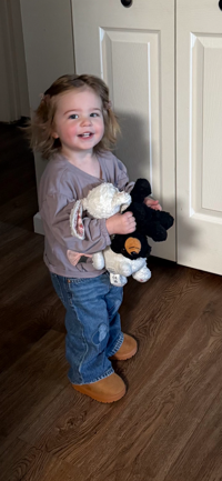 Lonnie and Diane Price of De Soto sent a picture of their great-granddaughter, Goldie Garrett. “She weighed a scant 3 pounds and 15 ounces and stayed in NICU for 10 days before coming home,” Diane said. “Goldie has been a fighter from the start and, now at 17 months, loves to play outside, swinging or picking up rocks from our driveway as a gift to us. Her favorite constant companions, Bunny and Smokey, are shown in this picture. She brings so much joy and happiness to all who meet her.” Goldie is the daughter of Greg and Carleigh Garrett.
