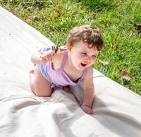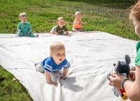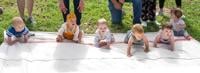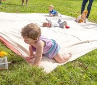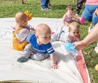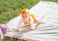 Liliana Biesemeyer, 10 months, of Hillsboro decided she needed a drink from that sipper cup across the blanket and off she went to the finish line, leaving the others at the starting line.