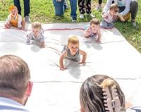 Jockeying for position in the final race, Hadden Wass, 11 months, of Crystal City leads the way to the finish line.