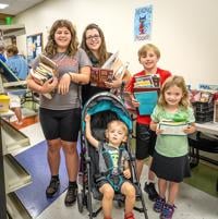 The Hastings family from Barnhart: Adilyn, 11; Jacob, 9; Marielle, 4; Rogan, 2; and mom, Megan, find a few books at the Festus Public Library Book Sale.