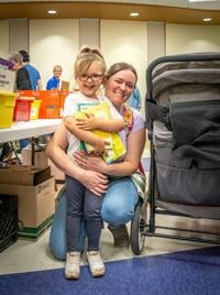 Ashley Sellers and her daughter, Pamela, 4, from Festus are at Festus Public Library finding several treasures at the book sale.