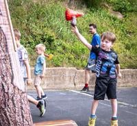 Henry Douglas, 4, from Desoto throwing an ax to win a prize at the Free Family Fun event.