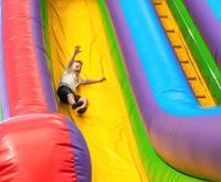Cole Hardin, 5, of Festus sliding down the inflatable giant slide at Twin City Days.