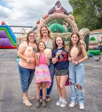 From left, Tracy Russell, Lindsay Menkovic, Alyssa Menkovic, 9, Lyla Braun, 13, Taylor Russel, 13, all from De Soto, enjoying cotton candy and snow cones at Twin City Days on Main Street.