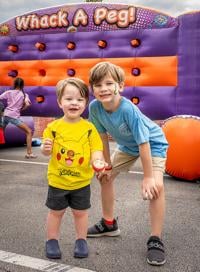 Elijah Steinkoetter, 7, of Barnhart and his younger brother Milo, 2, have fun playing the Whack a peg game.