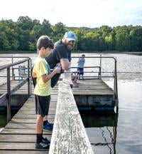 Focused on fishing, Zander Johnson, 9, of Pevely, with his dad, Chris, at the Hooked on Fishing event at Twin City Days.