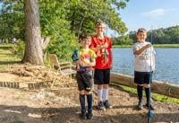 From left, Mason Whitehead, 7, and his brothers, Logan, 11, and Evan, 8, of Hillsboro move to a different spot to try to catch catfish at the Hooked on Fishing event during Twin City Days.